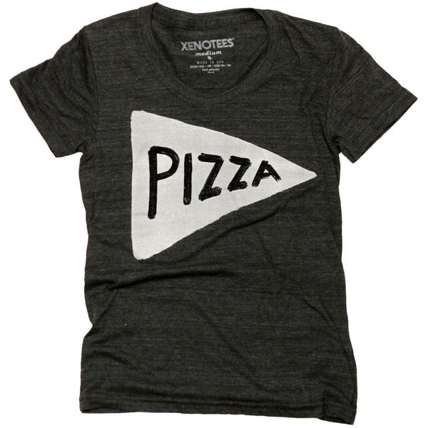 Experience love at first bite with this cute top! A short sleeve pizza themed graphic tee for women and teen girls. This unique t shirt design was created by and for pizza lovers, professionally screen-printed on to a tri-blend track tee with a soft buttery vintage feel. Made in the USA, slow fashion at its finest.