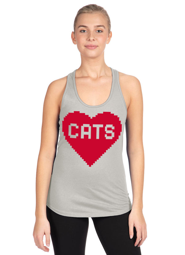 Unleash your inner cat lover with our Women's 8-bit Heart Tank Top! Perfect for a cat yoga session at your local cat cafe, a hearty run, or any vigorous workout, including playing with your feline friends!