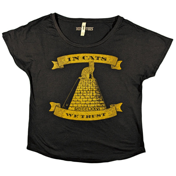 Women's In Cats We Trust Vintage Dolman Style T-shirt - Printed on a Next Level Dolman Tee.