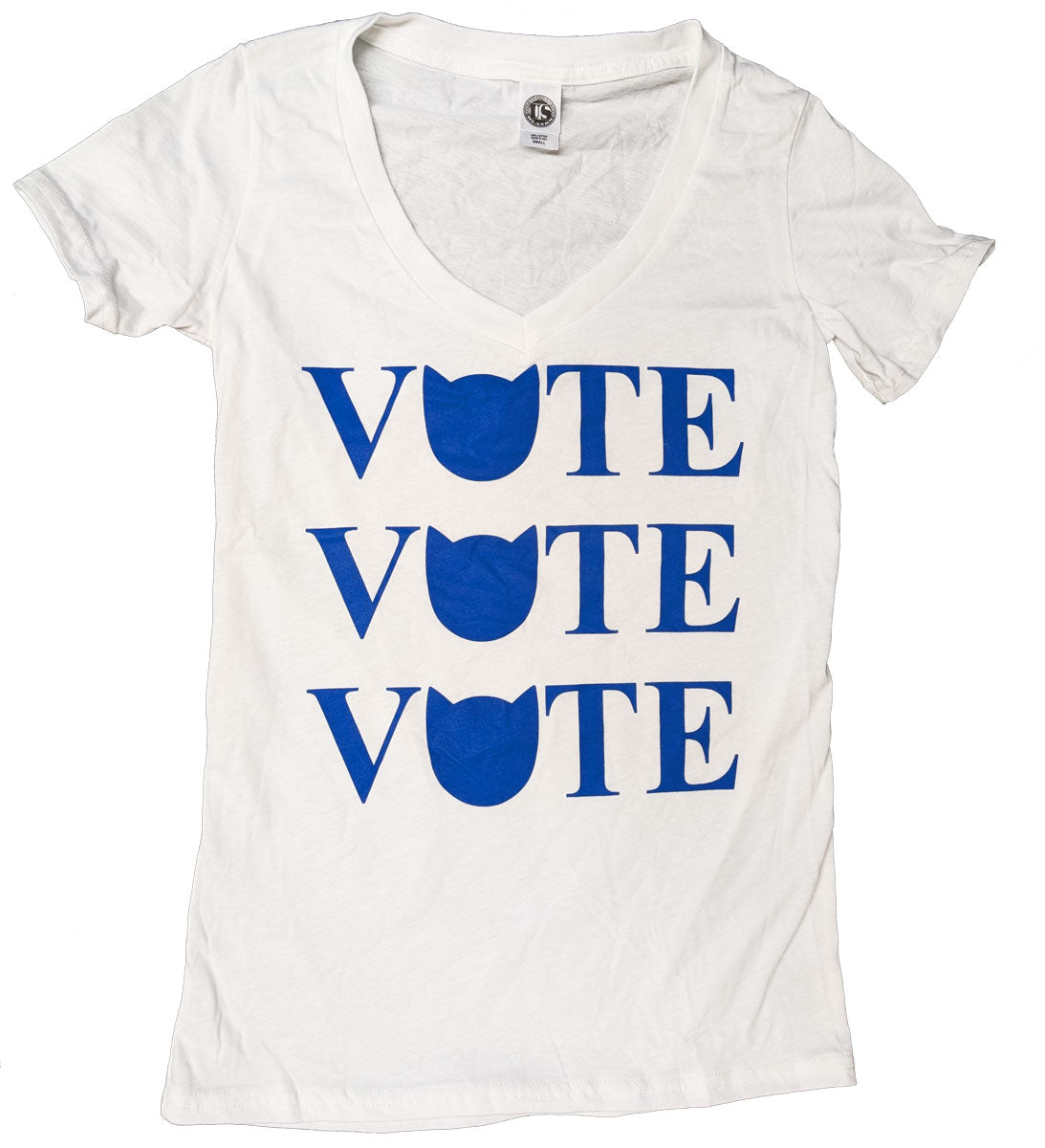 Vote (BLUE) for Cats V-neck T-shirt! Professionally screen printed on to a Made in the USA tee, and shipping from our Philadelphia studio.