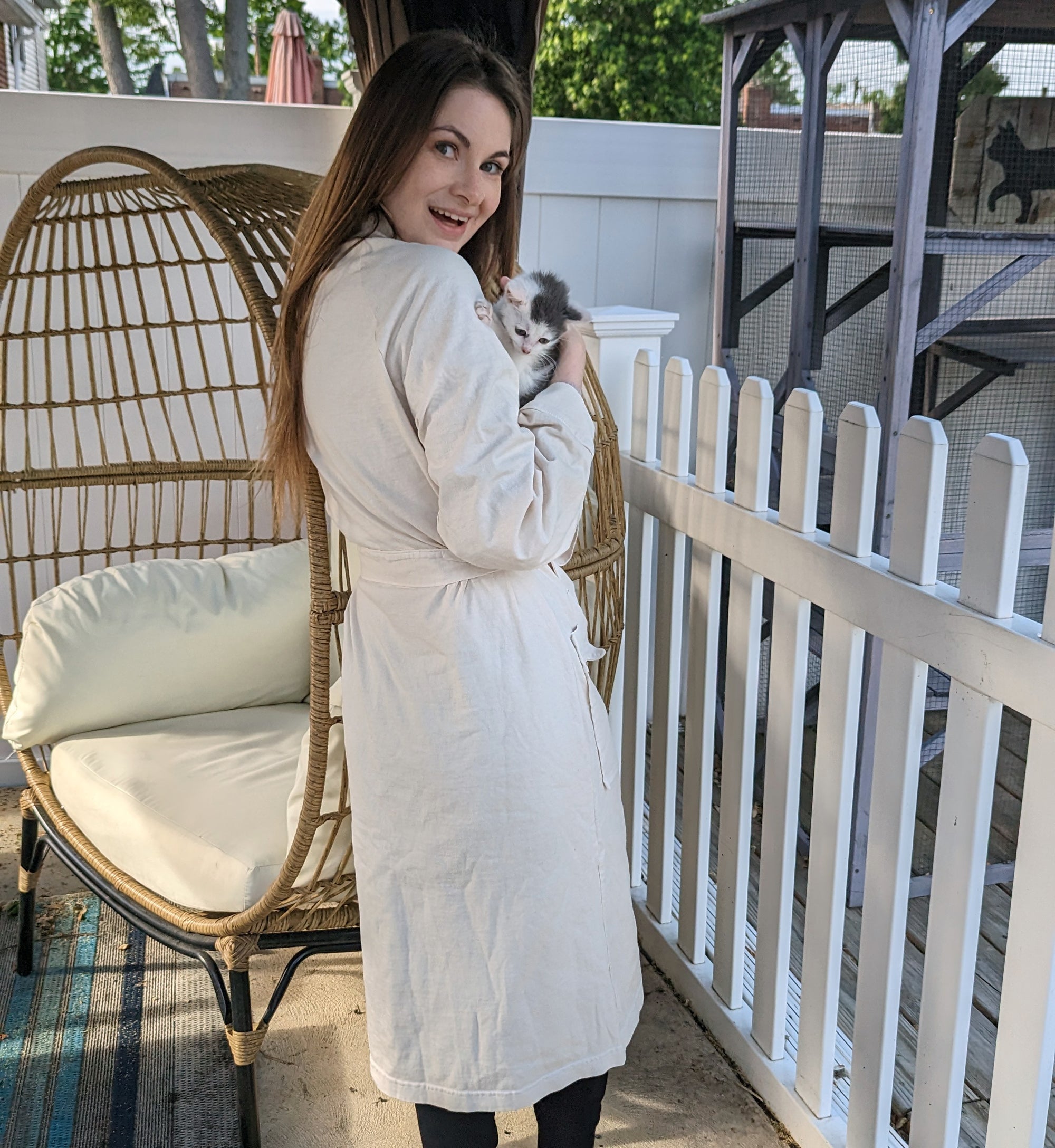 NEW! A super durable Cat Lady Robe, for lounging around the house, wearing to festivals, or on beach vacations. Made of heavy 100% cotton jersey, virtually shrink free, and features 2 deep pockets and an attached waistband.