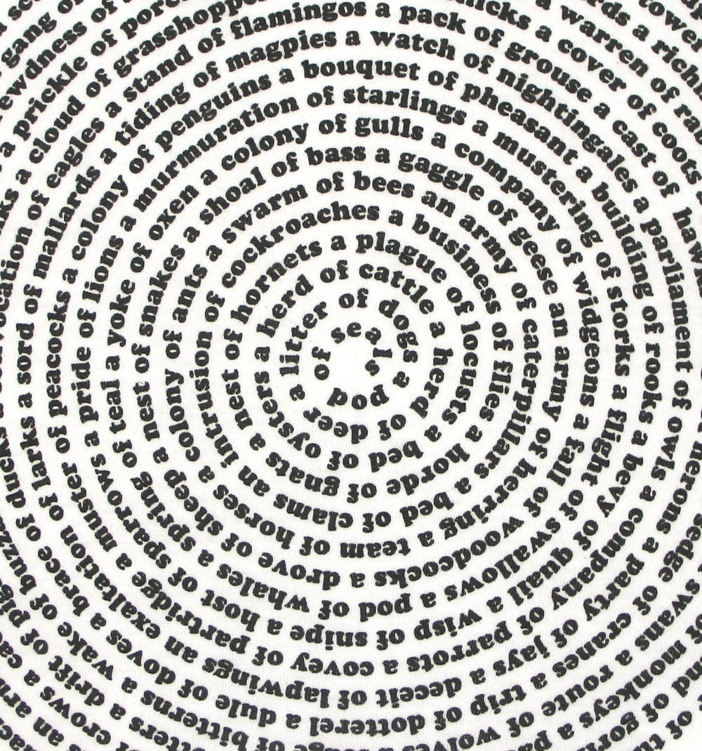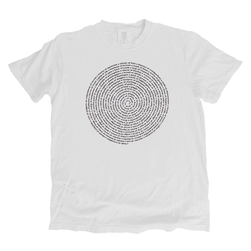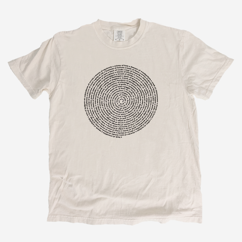 This original design lists over 100 collective animal nouns (like a sleuth of bears, a murder of crows, and a drift of pigs), turning language trivia into wearable art that delights book lovers, teachers, students, and word nerds alike.