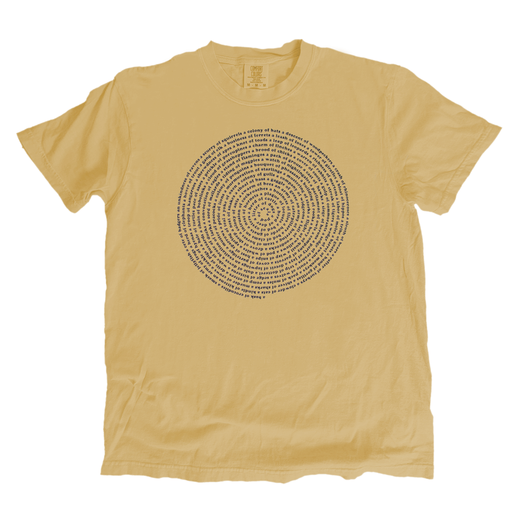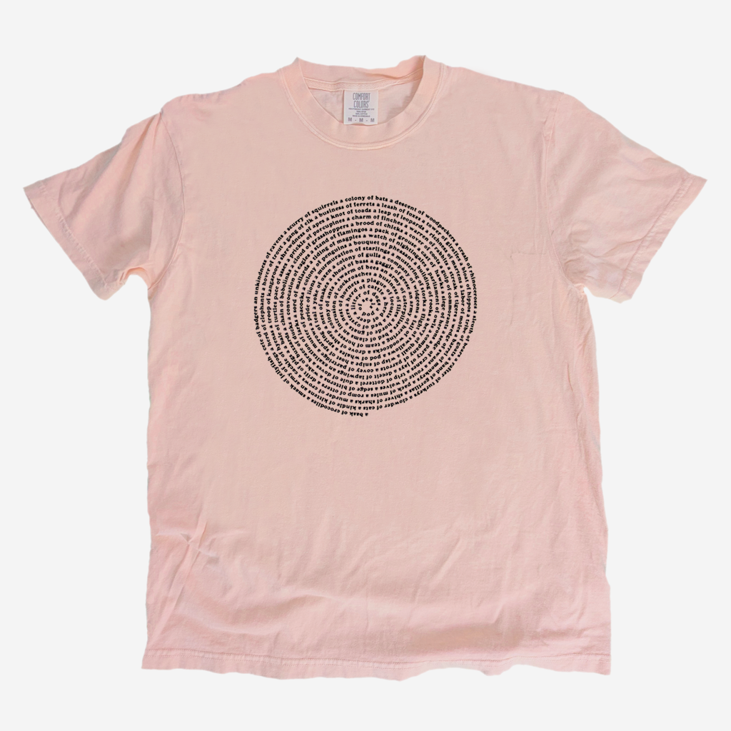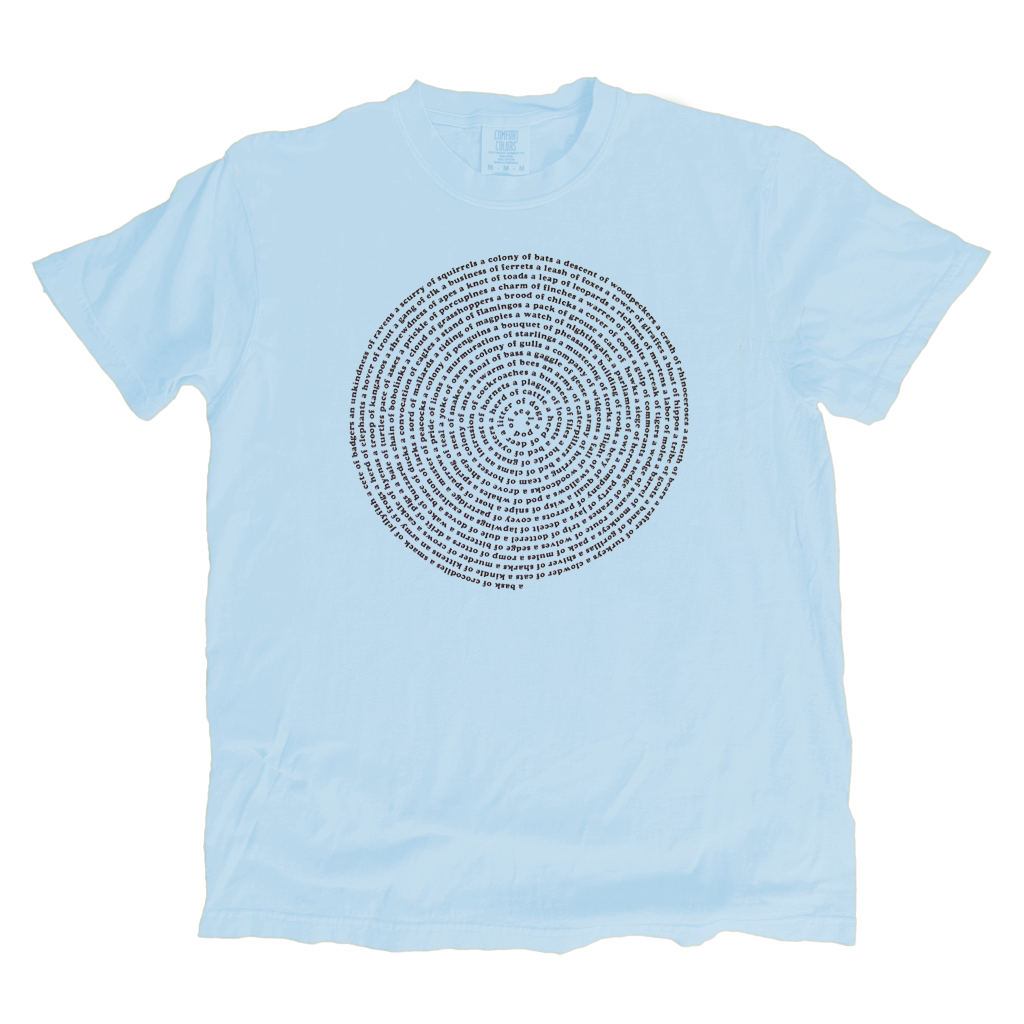 This original design lists over 100 collective animal nouns (like a sleuth of bears, a murder of crows, and a drift of pigs), turning language trivia into wearable art that delights book lovers, teachers, students, and word nerds alike.