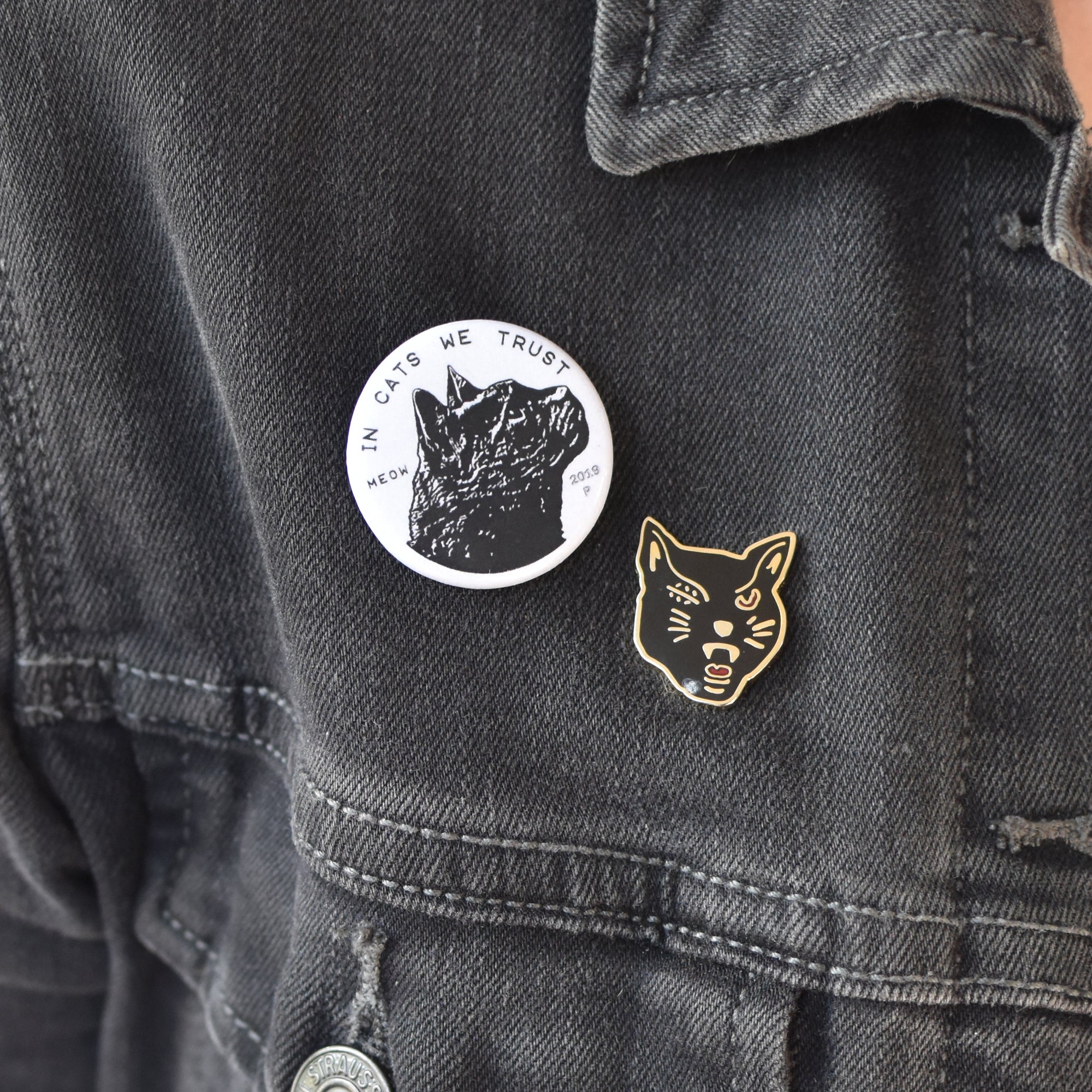 The perfect small gift for any cat lady or cat man! This cat coin is the purrfect currency to pin on your reusable cloth mask, backpack, tote bag, or jacket! Meowny has never been so cute! This is a 1.25" button with a durable steel pin-back.