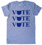 Vote (BLUE) for Cats T-shirt Professionally screen printed and shipping from our Philadelphia studio. Available on a slim fit ladies' cut tee in XS to 3XL.